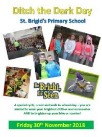 Our school ECO Councillors told us all about Ditch the Dark Day during assembly this morning. The event takes place next Friday, 30thNovember and children are asked to come to school wearing bright coloured clothing etc. (Hi-Vis coats/ Bright sports tops/ reflectors on bags etc.). This means that the day is a non-uniform day. It’s also a day when we try to reduce the number of cars entering the school site so walking the whole or part of the way to school is encouraged.