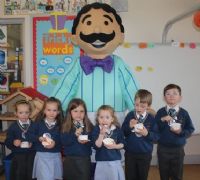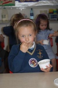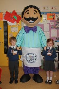 Mr. Eamon McKillop from Spar, Frys Road arranged for Mr. Morelli to visit the school. As well as hearing all about how ice cream is made every pupil in P1 & 2 (and some staff) received a free tub of Morelli's ice cream.