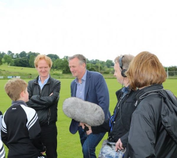 Current Northern Ireland soccer manager Michael O’Neill was in town last week making a documentary about his life growing up. He also played for All Saints GAC when he was younger and the documentary makers requested that a few of the pupils who play for All Saints attend. Paddy Murphy even got the opportunity to interview Michael for the radio documentary. As Michael is a past pupil of All Saints PS we were delighted that some of our St. Brigid’s pupils got to meet him.