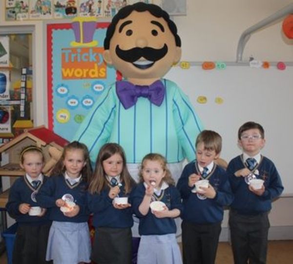 Mr. Eamon McKillop from Spar, Frys Road arranged for Mr. Morelli to visit the school. As well as hearing all about how ice cream is made every pupil in P1 & 2 (and some staff) received a free tub of Morelli's ice cream.