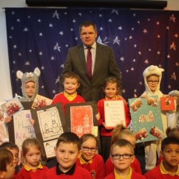 Ballykeel PS P1-3 pupils joined us for our show this week. During their visit they presented us we exchanged Christmas Cards and the P3 children from both schools sang a song about their work together set to the tune of "Rudolf the Red Nose Reindeer”.