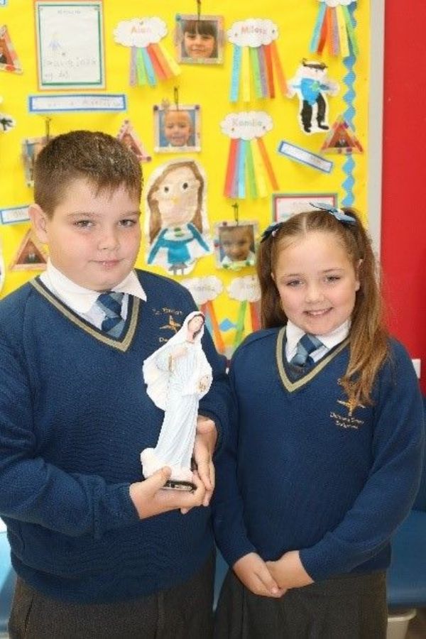 Micheal and Savannah travelled on a pilgrimige to Mejugorrie recently. While they were there they prayed for everyone at St. Brigid’s and brought the school back a beautiful gift of a statue of Our Lady. Thanks to both of them and their family for thinking of us all while they were away.