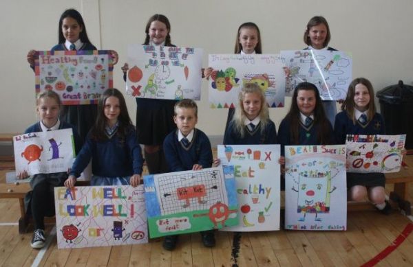 Some of the winners of our healthy eating poster competition. The children’s drawings were made into posters for display around the school.