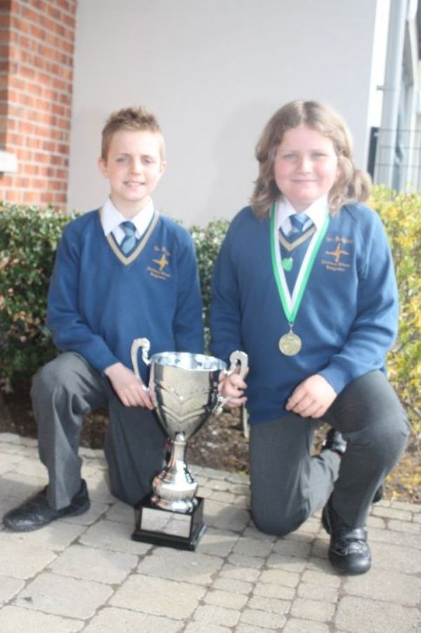 Corey and Jude display the cup they won at the recent London Irish rugby competition. Well done boys!