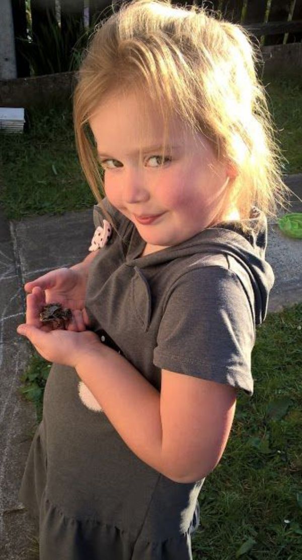 Amelia (P2) and her classmates have been learning all about the life cycle of a frog. She was lucky enough to find a frog in her garden. Here she is holding it for the camera. Good girl!