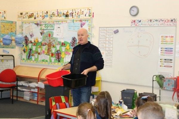 Mr. Barry Tapster came to visit P3 this week. Barry is an Environmental Officer for Mid & East Antrim Council and a frequent visitor to the school. He helped the boys and girls to understand what happens to our rubbish especially if we don’t recycle. He told them all about "Landfills” and the need to avoid relying on them for getting rid of our rubbish.